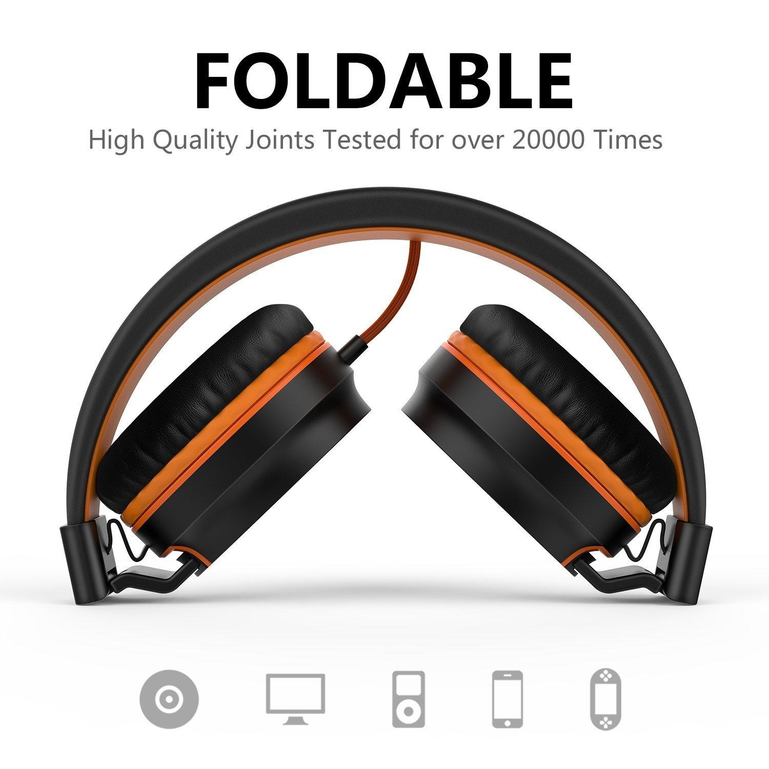 Ailihen I35 Stereo Lightweight Foldable Headphones Adjustable Headband Headsets with Microphone 3.5mm for Cellphones Smartphones Iphone Laptop Computer Mp3/4 Earphones (Black/Orange)